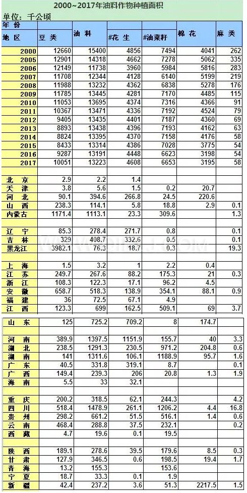 權(quán)威發(fā)布!2000年~2017年油料作物產(chǎn)量信息匯總表(含具體地區(qū))